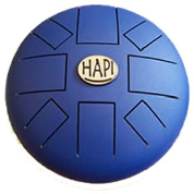 A circular metal drum in D minor pentatonic tuning. Requires nylon beaters. It works well in the middle of a group of four with a beater each. It often becomes a transition object to imaginative play. Polar bear soup has been made in it. It has become a camp fire.